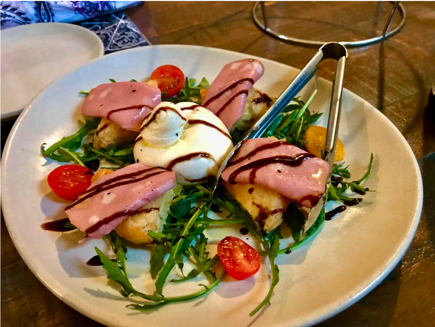 For entrée, we had the very popular gnocco fitto which is the same dough as the tigelle but fried, with a beautiful round burrata cheese, mortadella, finished with rocket, cherry tomatoes and a balsamic glaze, and it tasted just as good as it looks.