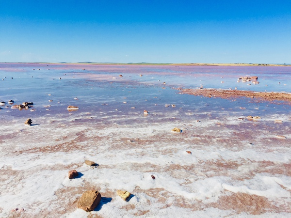 After exploring the tiny house—which took all of five minutes—we ventured out to the pink lake. “Spanning some 15 square kilometres in size and a dramatic departure from the surrounding landscape, its pink colouration is always changing depending on the seasons, water level and sunlight,” Michael said. Lake Bumbunga comes from the Kaurna word, Parnpangka, which translates to “rainwater lake”. Luckily for us, the colour pink was in season. We were greeted with what I like to call a bubble gum explosion.