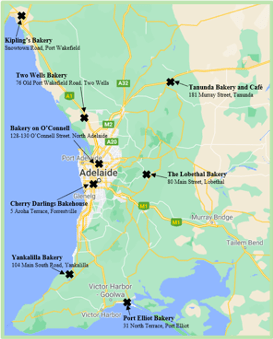 Seen on the provided map are the bakeries I have visited in four separate areas: Adelaide, the Adelaide Hills and Barossa Valley, the Fleurieu Peninsula and some outliers. Uncovering the best of the best and some hidden gems, I plan to learn how bakery simplicities can equal happiness.