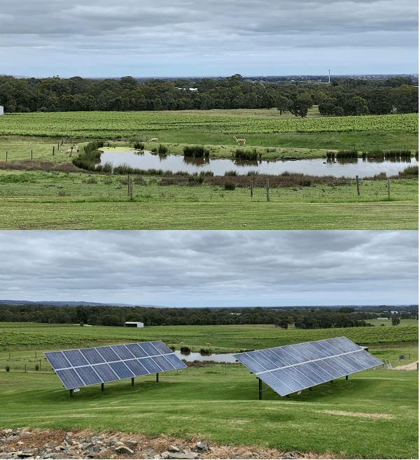Gemtree’s winery, cellar door and vineyard are all powered by three separate solar systems that not only give greater control over energy but also large reductions in operating costs. In the nearby paddock, sheep are used for weed control.