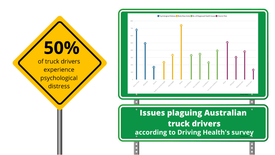 According to Australia’s largest survey of truck drivers, half of participants report suffering psychological distress to a moderate or severe extent.