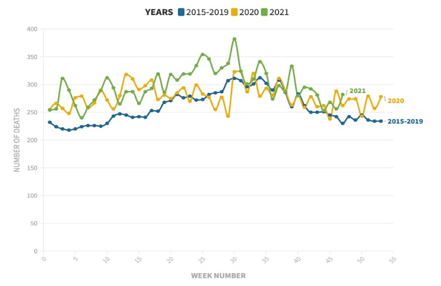 Interestingly, the average death rate in 2021 increased by six per cent in one year alone.