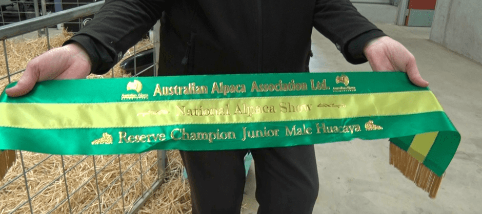 On his first outing without his mum, six-month-old Blaze won Reserve Champion Junior Male, thrilling alpaca farmer Lee Sadler.