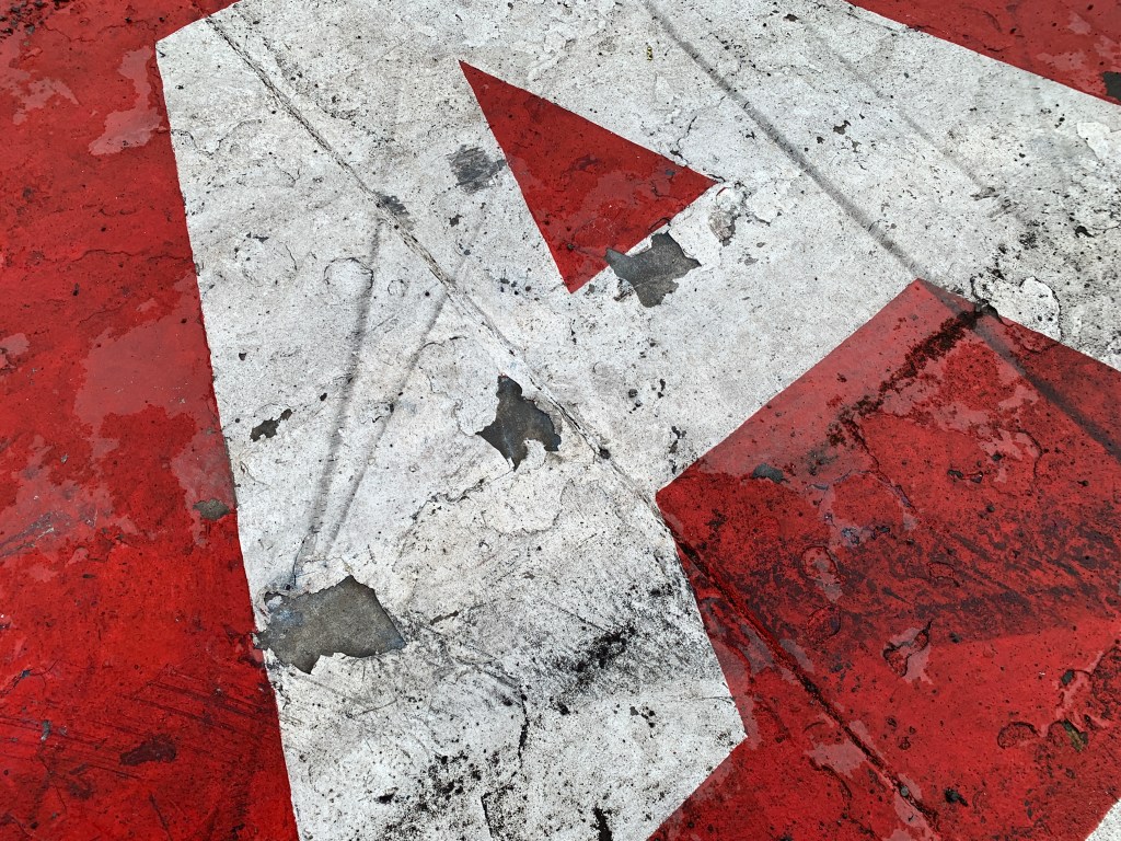 My shoes skim the painted tarmac, which has cut and grazed and marred more than primary school knees. “258,000 people”. The letters spell the name of our city, but chunks are missing. “$51.85 million”. Deep gashes reveal charcoal under white and charcoal over red… “net zero by 2050… 2050”. A charcoal river runs through the green.