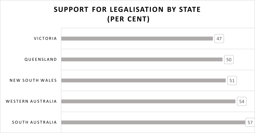 Polling conducted by Essential Media Communications shows Australia-wide support for legalising cannabis, and South Australia is the state most in favour of changing the law.