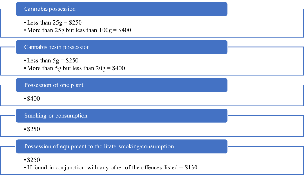 In South Australia the maximum fees for different types of cannabis possession and use are: