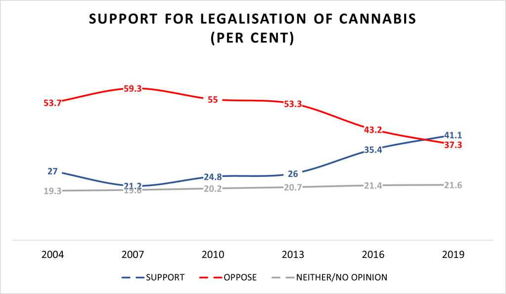 The Essential poll surveyed 1,150 people (with a 3.1% margin of error) The results were in line with increasing support shown year on year through the National Drug Strategy Household Survey, which in 2019 gathered 22,274 responses.