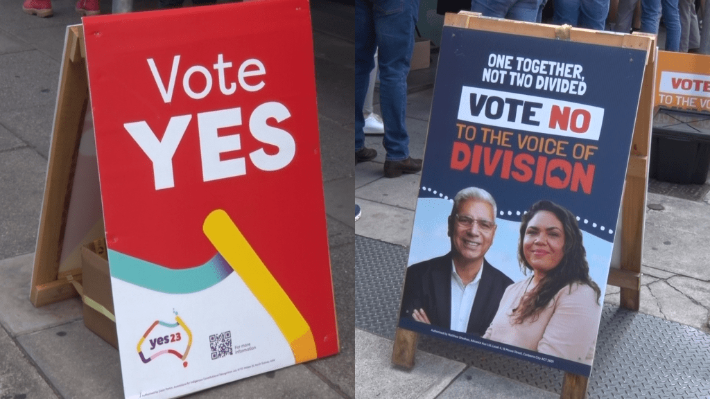 A-Frames displayed during the 2023 Voice to Parliament Referendum (source: Robert Hicks)