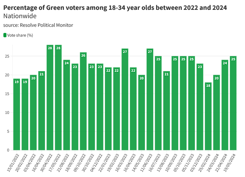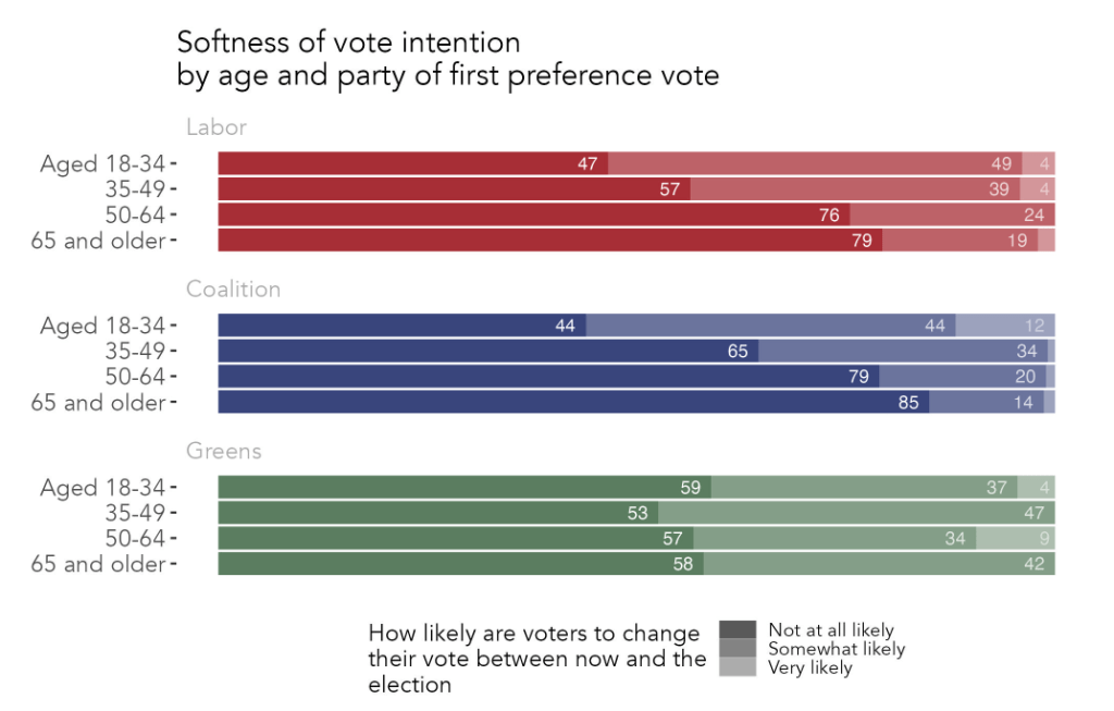 However, young Greens voters are the highest proportion of Greens voters to report they won’t change their vote.