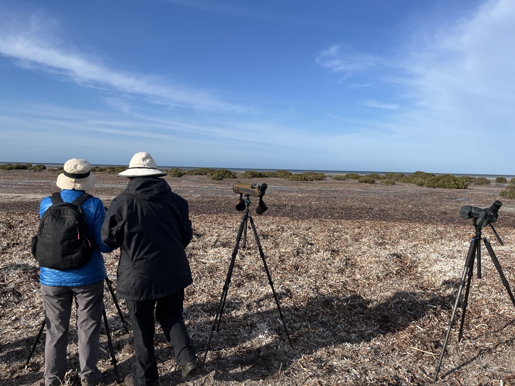 I’m at Thompson Beach, which is part of the Adelaide International Bird Sanctuary (AIBS). The sanctuary covers 60 kilometres of coastline north of Adelaide and is at the southern end of the East Asian-Australasian Flyway — a migratory path used by upwards of 5 million birds. The red-necked stints in front of me are among over 20,000 migratory shorebirds that stay at AIBS each year to feed and roost during their non-breeding season. Despite these staggering numbers, Thompson Beach is better known by tourists as a crabbing destination — something volunteer group, Friends of Adelaide International Bird Sanctuary (FAIBS), wants to change. I’ve joined a group of volunteers today to survey the migratory shorebirds in action.
