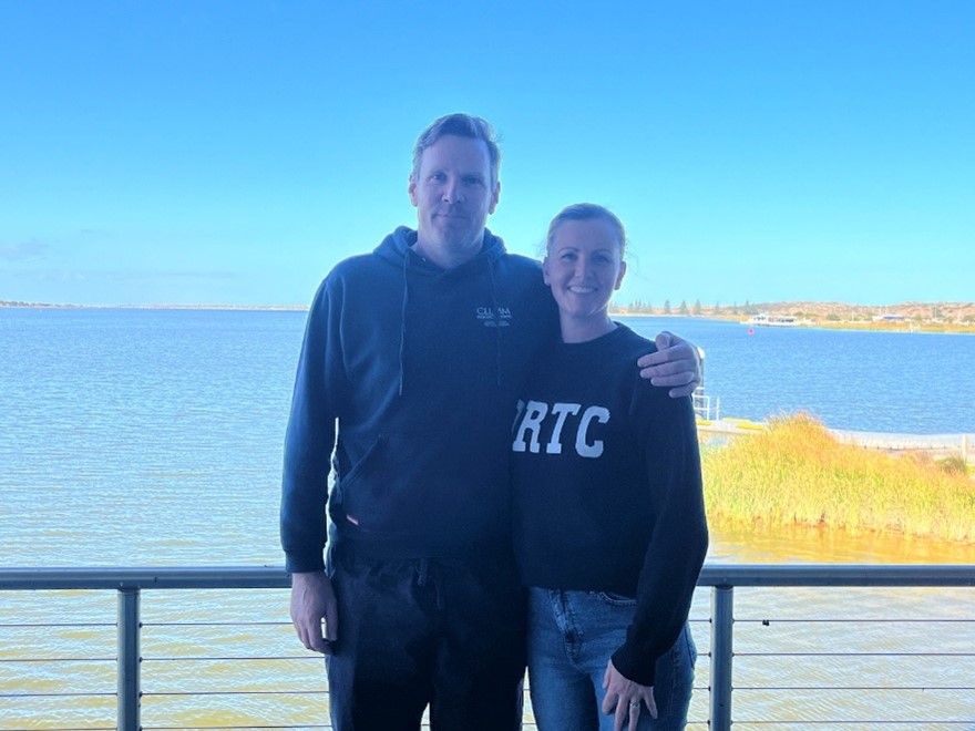 Whiterod and French outside the CLLMM Research Centre. (Image: Alana Pahor)