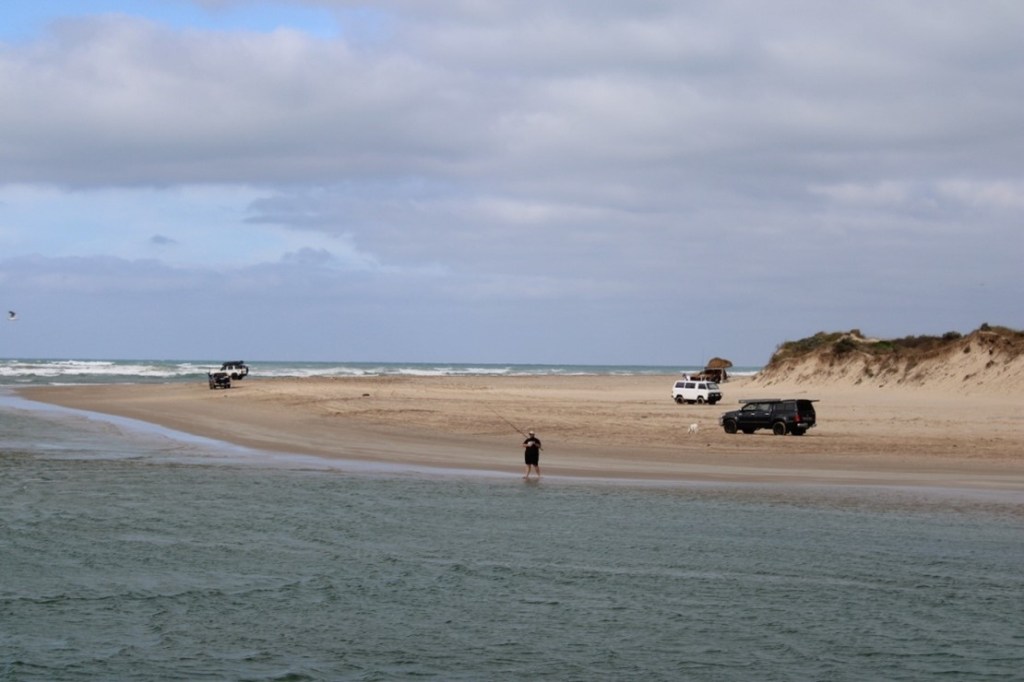 Drivers fishing at the Murray Mouth. (Image: supplied by CLLMM Research Centre)