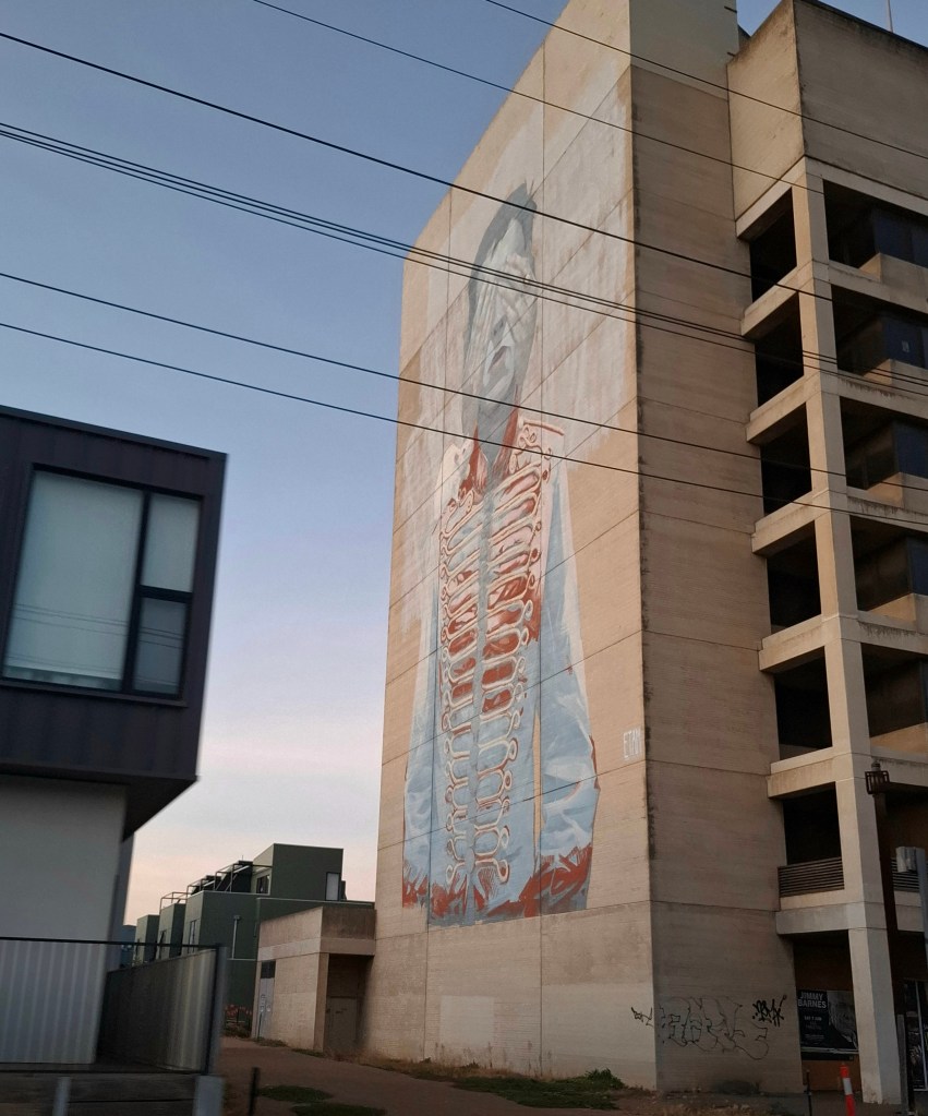 Readett’s second street mural in Port Adelaide which is located near the Lighthouse on North Parade. Image: Hannah Oxford.